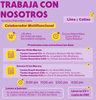 ¿Quieres conseguir los mejores alimentos y productos para tu casa a los mejores precios? ¿Hacer tus compras de todos los días? ¿No perder tiempo inútilmente? Los supermercados de Perú cuentan con una gran variedad de productos y facilidades y ventajas a la hora de comprar. Aprovecha que Tiendeo te ofrece los folletos de ofertas y descuentos, de una gran cantidad de cadenas, tales como Tottus, Plaza Vea, Vivanda, Makro, Wong, Metro, Alicorp, Maxi Ahorro, Avinka, Mass y Dicopet entre otras. Así, harás tus compras más fácilmente y con los mejores precios.